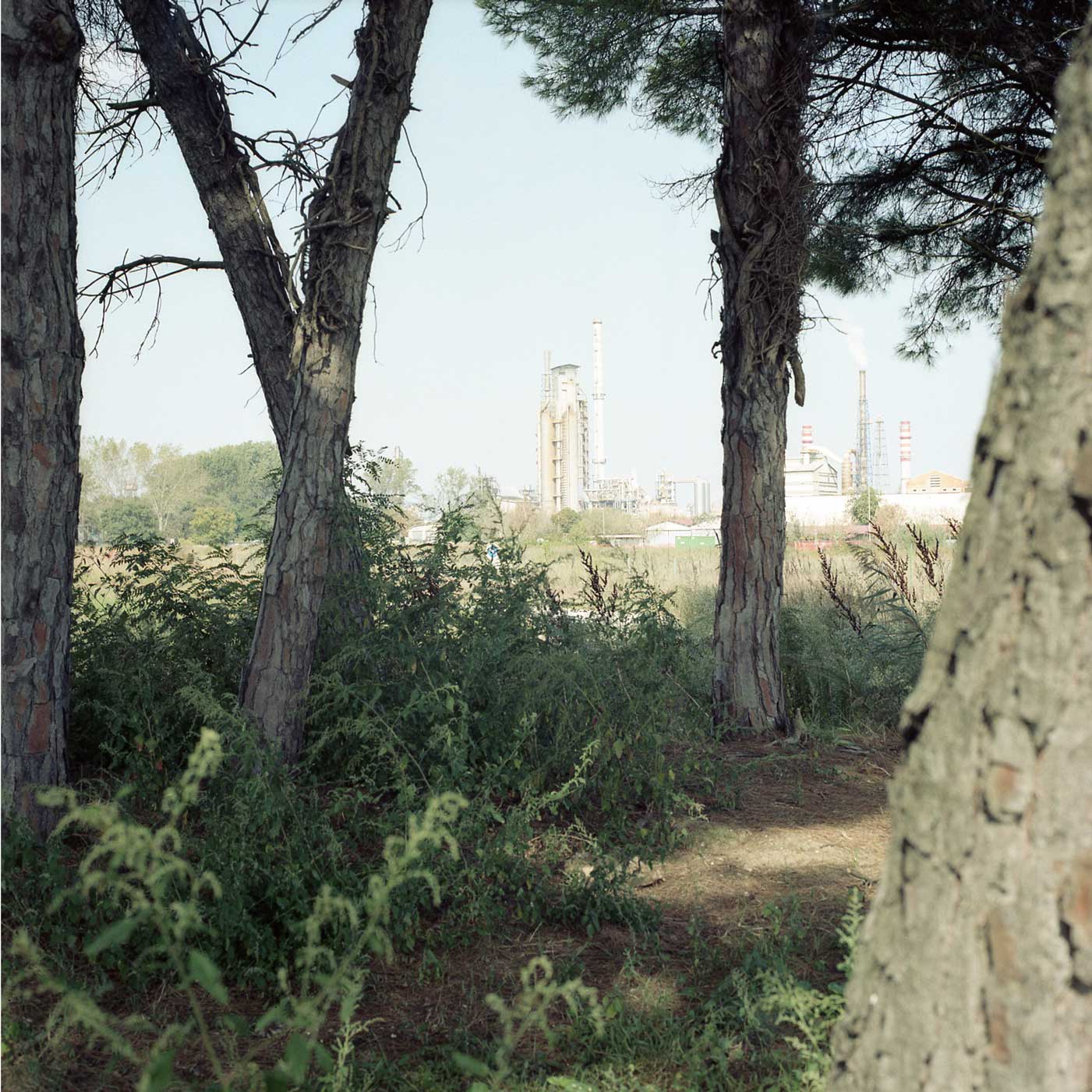 Mixed with them other modern industrial plants, which are teeming with activity day and night producing a phantasmagoric illumination; then the port for large ships, and the pine forest towards the sea, the beaches, the tourist port of Marinara, with its hundreds of private boats, modern business spaces, but also small popular restaurants with takeaway fish and family houses. If we add the immediate hinterland of Ravenna, with its unique monuments, with its seemingly static mosaics, hieratic, but full of a terrific tension and expressive power, the port of Classe, the excavations, Romanesque churches with round bell towers, all this gives us an extraordinary assortment of images and visions.